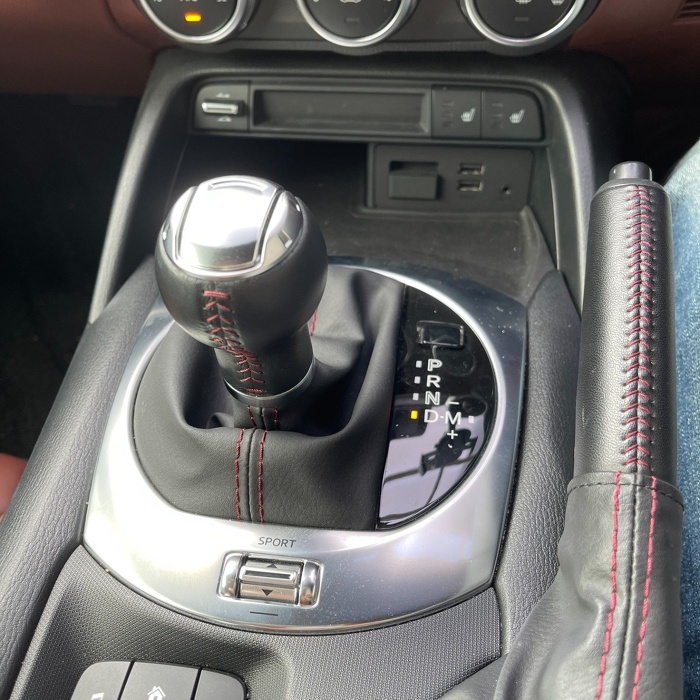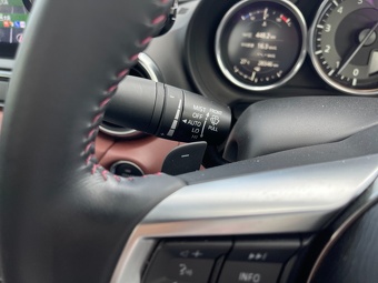 Dレンジを右に倒すと、プラス・マイナス で アップ・ダウン ができるようになる。どっちがアップで、どっちがダウンかすぐ分からなくなるので正直あまり使えていない。スマート カブリオを2台乗ってたことがあるが、その頃は AT に任せているとギクシャクするので、ずっと MTモードを利用していたことがある。でも、ロードスターではわざわざ使う気にならない。
