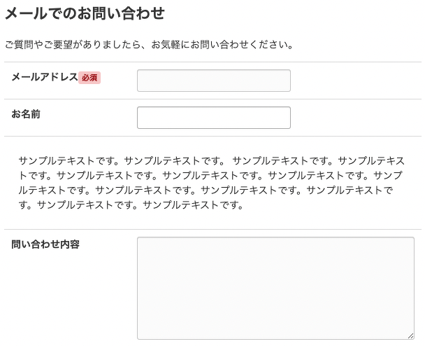 同様に /themes/system/include/form/confirm.html も同じように修正すれば、確認画面にも同様の文字列を表示させることができますし、何も出さないようにしてもいいかもしれません。