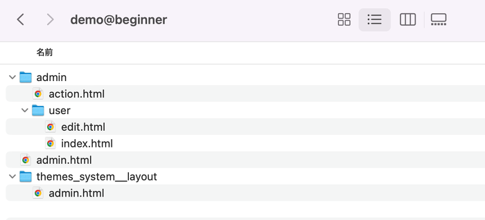 themes_system__layout のディレクトリにある admin.html は、themes/system/_layout を上書きするようにファイルになります。