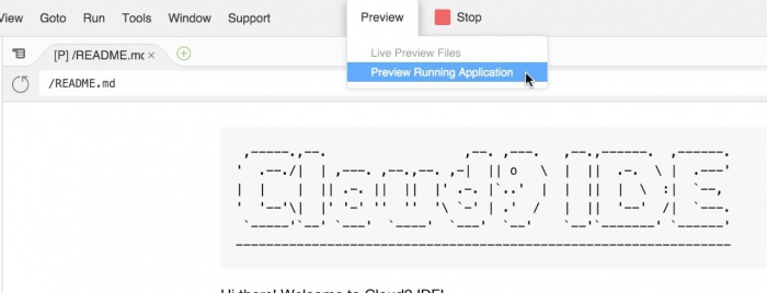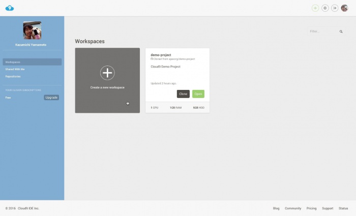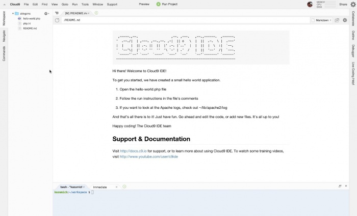 こんな感じで、Workspace が完成! エディタとブラウザと、ターミナルが全部ブラウザ上にある面白い環境ができあがります。