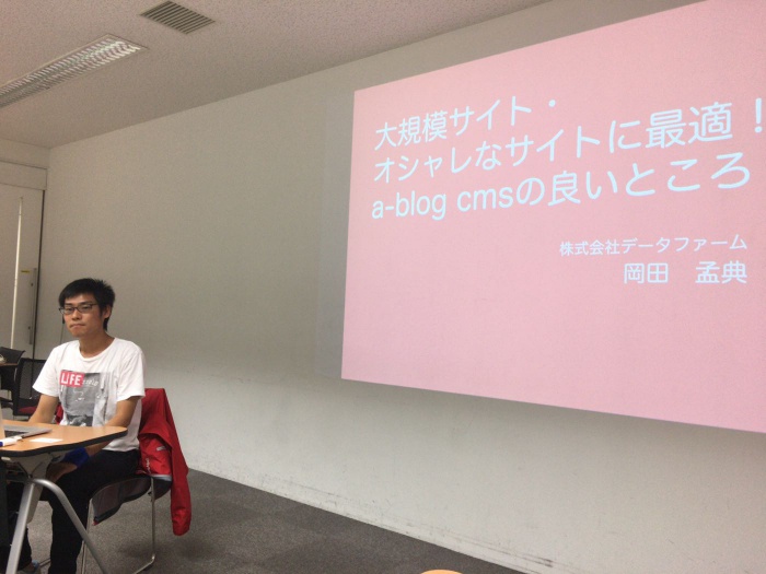 a-blog cms 勉強会 in 静岡 2016/10 を開催しました 2016年10月01日 #ablogcms#静岡 静岡はパートナーのデータファームさんの協力により勉強会を開催しました。 「a-blog cms 導入サイトのためのデザインカンプ制作術」というタイトルで、アップルップルのデザイナー今井さんが発表しました。 「大規模サイト・オシャレなサイトに最適! a-blog cmsの良いところ」というタイトルでデータファームの岡田さんに発表していただきました。