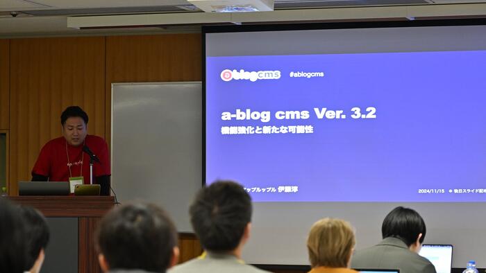 a-blog cms Training Camp 2024 は、ユーザーや開発者が一堂に会し、活用事例や次のバージョンの新機能を学び、情報共有を行うためのイベントとして2024年11月15日に名古屋国際センタービルで開催されました。