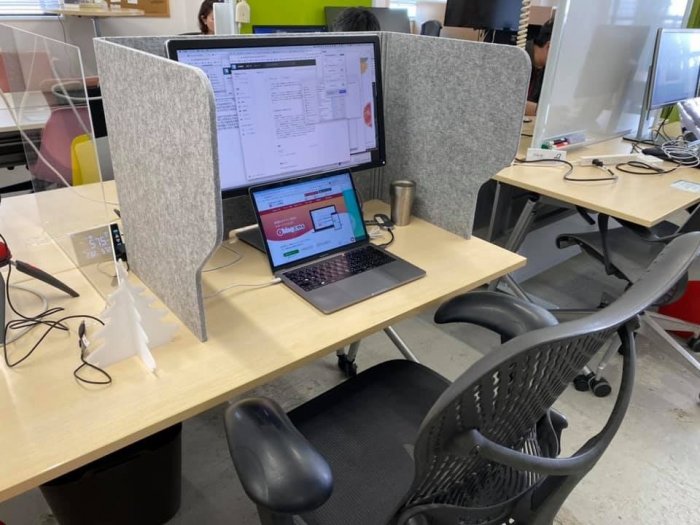 正直「吸音ブーススタンド」は防音というよりは、見られないようにする簡易的な壁という役割な感じになりましたが、それなりに人気で何もない広い机より囲まれている「吸音ブーススタンド」に吸い込まれるように人は座られます。