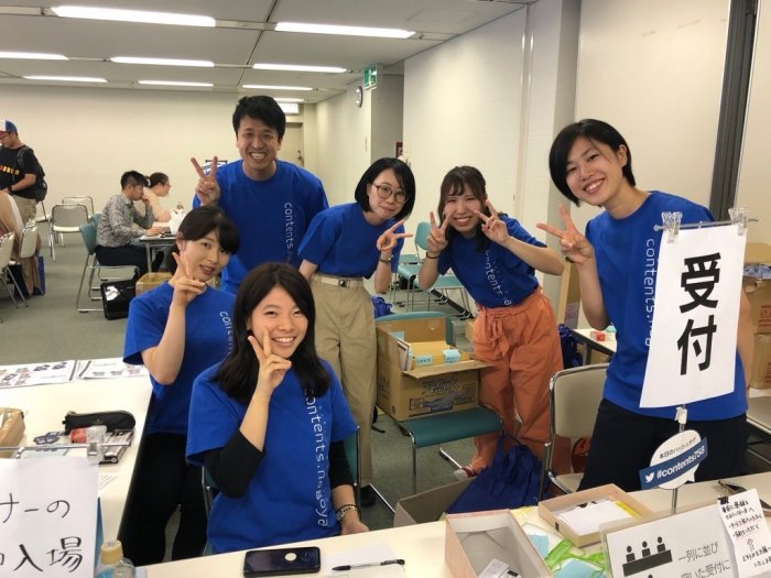 今回2回目の開催となる contents.nagoya 2019 を昨年同様「名古屋国際センタービル」の3フロアのいくつかの会場をお借りして開催しました。受付はベースキャンプ名古屋のアルバイトスタッフで!