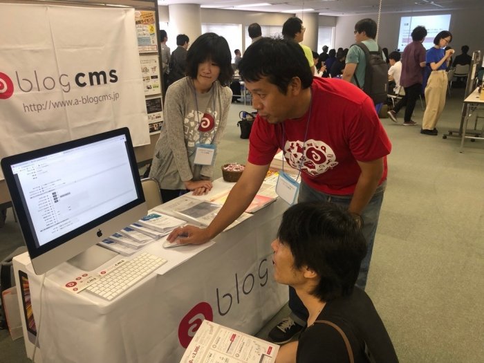 アップルップルのスタッフは各部屋とかのスタッフとして動いていたので、a-blog cms のブースはユーザーさんのご協力でなんとかブース出展しておりました。ご協力ありがとうございます。