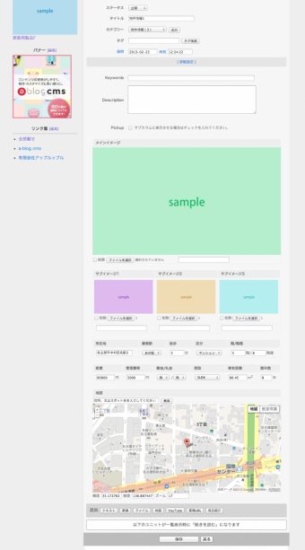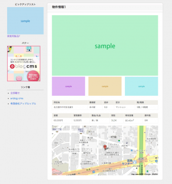 次の a-blog cms 1.6.1 には物件情報のサンプルを