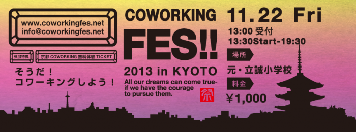 先週の金曜日に京都のコワーキングスペースの運営をしている人達が中心になってイベントが開催され、そこに行って少しだけ話をしてきました。京都までは新幹線に乗るとホントに近いですね。(のぞみ36分)
