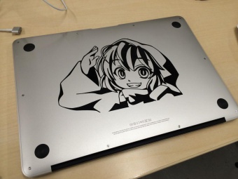 切り終わってから必要無い部分をぬいていきます。これが結構大変です。MacBookの裏って結構いいスペースだと思いませんか? 今回の写真は、蒼穹工房 の @makotok1 さんの協力でした。