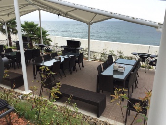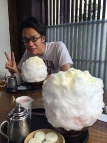 終わってから、海辺でも少し遊んで、常滑にある人気の「大蔵餅」にかき氷を食べに行きました。ネットで現在の待ち状況が見えるようなWebサービスを利用していて 50 組(2時間待ち)も待っている状況で、そこで予約してから現地に移動する事に。これはオススメです。