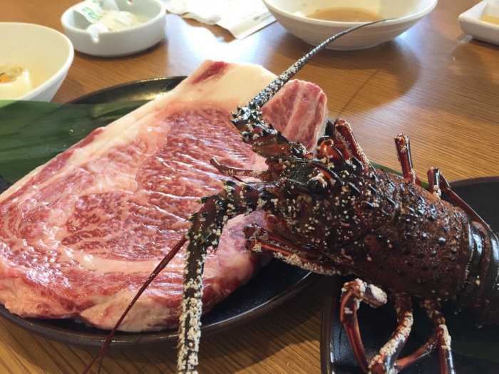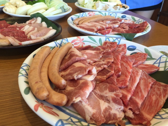 料理は、知多牛・知多産豚・ウインナー・焼野菜・大あさり・さざえ・クロワッサンに、知多牛ワンポンドステーキ+伊勢海老をオーダーしました。バーベキューにクロワッサン?って気もしますが、自分たちで焼く、焼きててのクロワッサンは人気でしたね。
