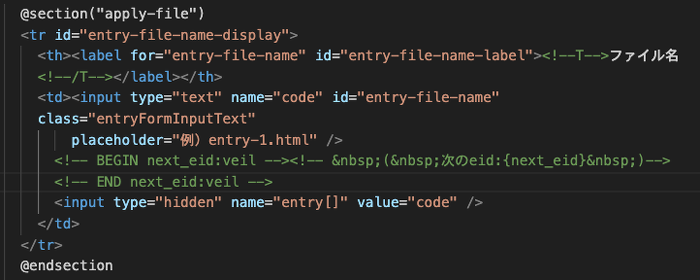 これで、次のエントリーコードが分かるようになります。今回の実装では、番号だけ表示をできるような実装になっていますので、エントリーの編集画面設定で entry- の部分をカスタマイズしたところは変えられませんので注意が必要です。