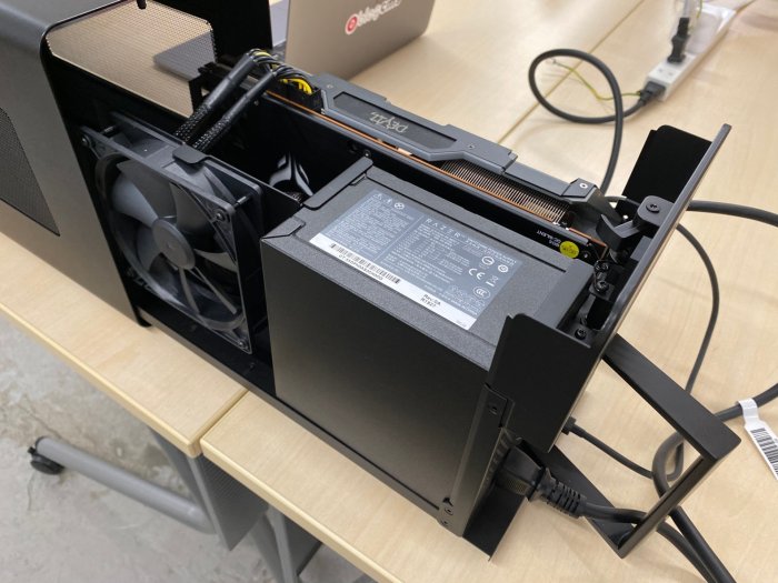 反対側には、ケースのファンと電源が載っています。取手を引っ張るだけでスルスルって出てきます。