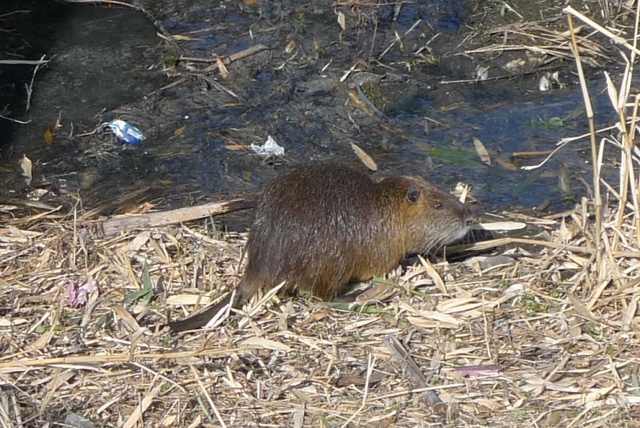 随分前から自宅の近くで大きなネズミの目撃談を聞いていたのですが、自分自身で見つけた事が無かったのですが、昨日のお昼に初めて見つけました。 タイトルにもあるように、[ヌートリア](http://ja.wikipedia.org/wiki/ヌートリア) のようで、ウィキペディアの写真と向きが逆なだけでそっくりでした。写真に撮ったヤツは...