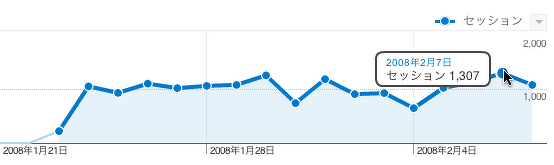 ケータイのアクセス数を別でカウントできるようにしてみたが、2/2〜2/5は変な感じの数になっている。UAをケータイの振りをしてまわってるロボットがいるんだろうか? 日付 一般ケータイ ロボットTOTAL RSS 2008-02-01 3,273 507 4,0237,803 32 2008-02-02 3,100 1,771 4,0268,897 35 2008-02-03 2,011 1,749 5,3489,108 ...