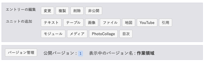エントリーの詳細ページの上部の一等地にバージョン管理に関するエリアがあります。この部分を見直したいと考えてみたいと思います。