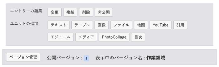 あとは「公開バージョン: (1) 表示中のバージョン名:作業領域」という表示を、もう少しスマートにしたい。 (1) 作業領域 だけでいいかな。