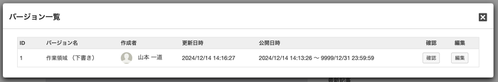 (バージョン管理)ボタンをクリックすると