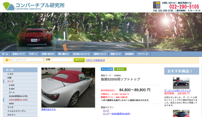 - 後期S2000用ソフトトップ 89,800円