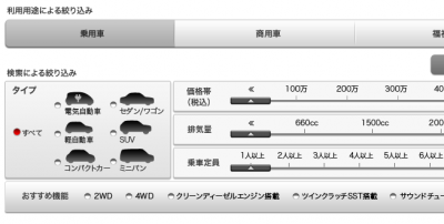トヨタのサイトでカーラインナップの絞り込み検索をする際のボディータイプは「セダン/ワゴン/ミニバン・キャブワゴン/2BOX/SUV/ビジネスカー/軽自動車」の7つに分かれている。