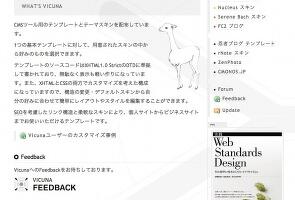 Vicunaというのは、ソースコードはXHTML1.0 StrictのDTDに準拠して書かれており、無駄なく表示も軽い作りになっています。また、XHTMLとCSSの両方でカスタマイズを考えた構成になっています。 現在、以下のような...