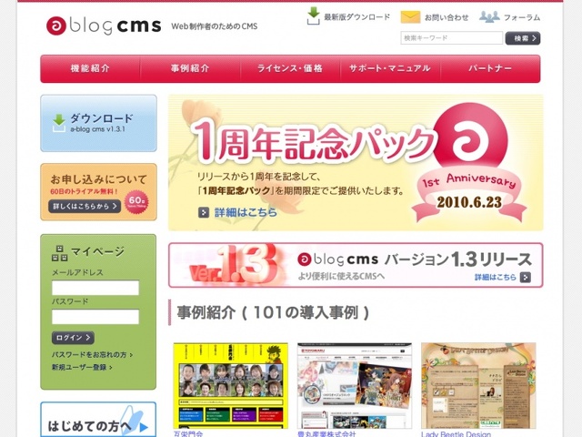 2009年6月23日が a-blog cms の誕生日でした。やっと1周年を迎える事ができました。そして、利用頂いている多くの方の協力もあり、公開されている [事例紹介](http://www.a-blogcms.jp/showcase/) が100件にもなりました。リリースされて最初の年に公開されている事例だけでこの件数は、とても嬉しい結果になりました。 ...